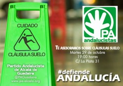 La portavoz del Partido Andalucista (PA) en el Ayuntamiento de Alcalá de Guadaíra, Lola Aquino, ha anunciado hoy que el Partido Andalucista asesorará a ciudadanos sobre las cláusulas suelo el próximo martes a las 19:00 horas en su sede de la calle La Plata “ante la patente falta de información por parte del gobierno local hacia la ciudadanía sobre los recursos municipales que los vecinos tienen a su disposición para ayudarlos”.